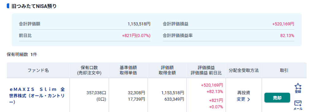 📸(スクショ③)NISA〈つみたて枠〉:eMAXIS Slim 全世界株式(オルカン)